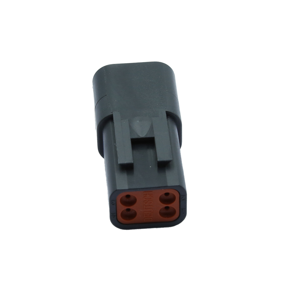 Этот разъем TE DT04-4P-E004 Разъемы DEUTSCH DT Connectors имеет прямоугольную форму, а не гибридный разъем, тип разъема и корпуса — это корпуса с клеммами типа «папа», система разъема — провод-провод, он герметизируется, основная функция блокировки интегрирована в корпус, разъем и клеммная заделка: провод и кабель