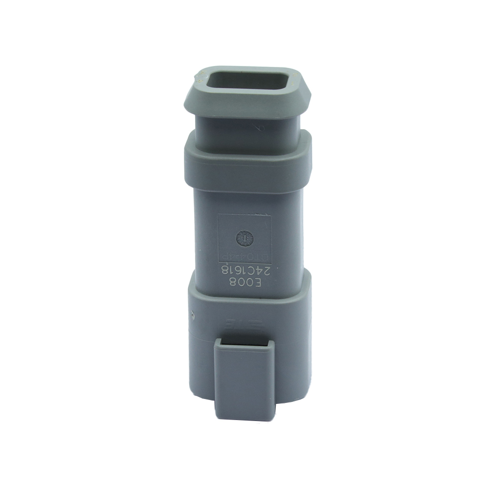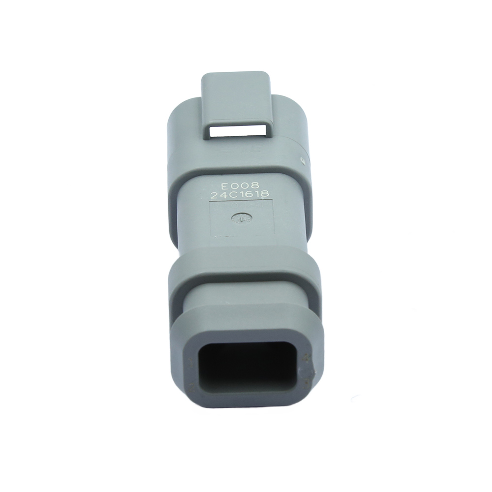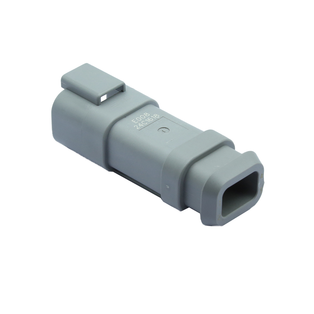 Форма разъема TE DT04-4P-E008 Разъемы DEUTSCH DT Connectors прямоугольная, это не гибридный разъем, тип разъема и корпуса — корпус с вилкой. Система разъемов представляет собой провод-провод, она герметична, основная функция блокировки встроена в корпус, разъем и клеммы завершают провода и кабели.