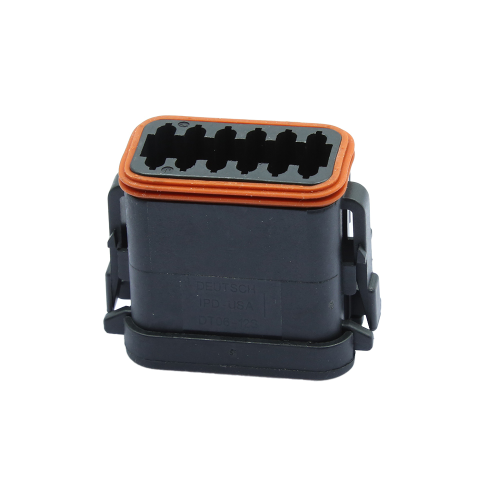 Этот разъем TE DT06-12SA-E005 Штекерные разъемы немецкий ДТ, 12-позиционный корпус, корпус для гнездовых клемм, провод-провод, 4,44 мм [.175 дюйма] по центральной линии, герметизируемый, черный, провод и кабель, питание, разъемы DEUTSCH DT.TE Industrial & Commercial Transportation удерживаются вместе с помощью защелок-защелок, резьбовых соединительных колец или стягиваются вместе с помощью домкратных винтов. Механизмы блокировки легко включаются и выключаются и подают звуковой или тактильный сигнал, когда они надежно закреплены. После закрепления механизмы блокировки предотвращают разъединение из-за вибрации или удара.