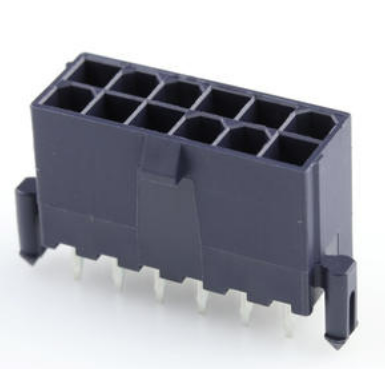 Этот разъем Molex 1724470012 Molex Автомобильный разъем для автомобильных кузовных деталей, Mini-Fit Jr. Header, двухрядный, вертикальный, с защелкивающимся пластиковым фиксатором для печатной платы, 12 цепей, нейлон 6/6, UL 94V-2, оловянное покрытие (Sn), возможность использования с раскаленной проволокой, черный.